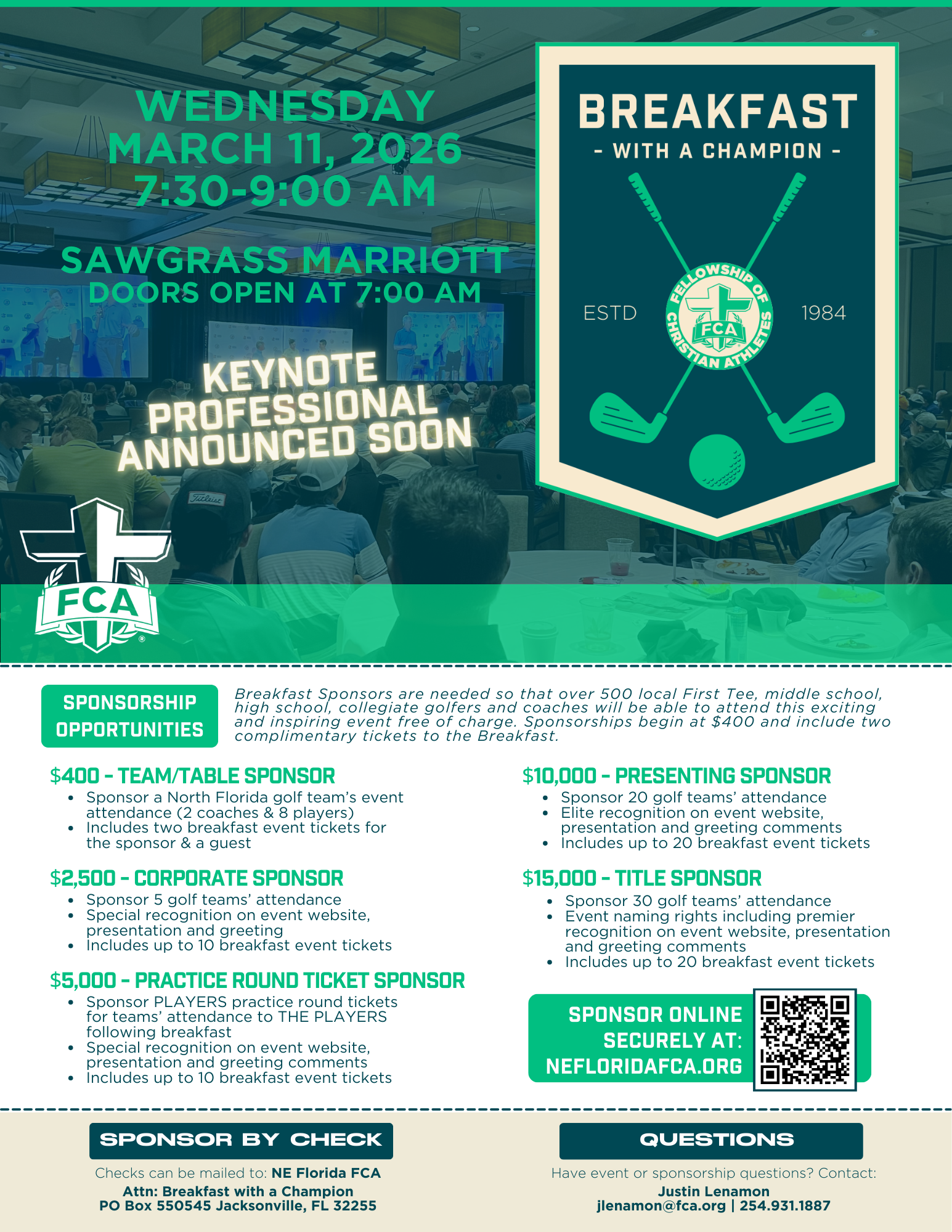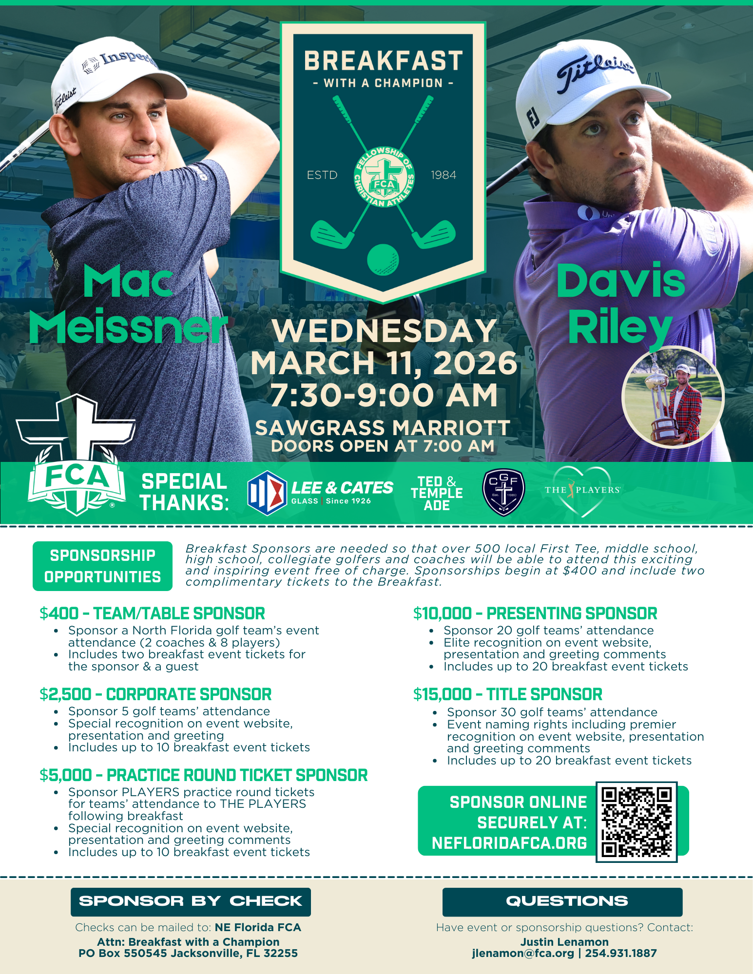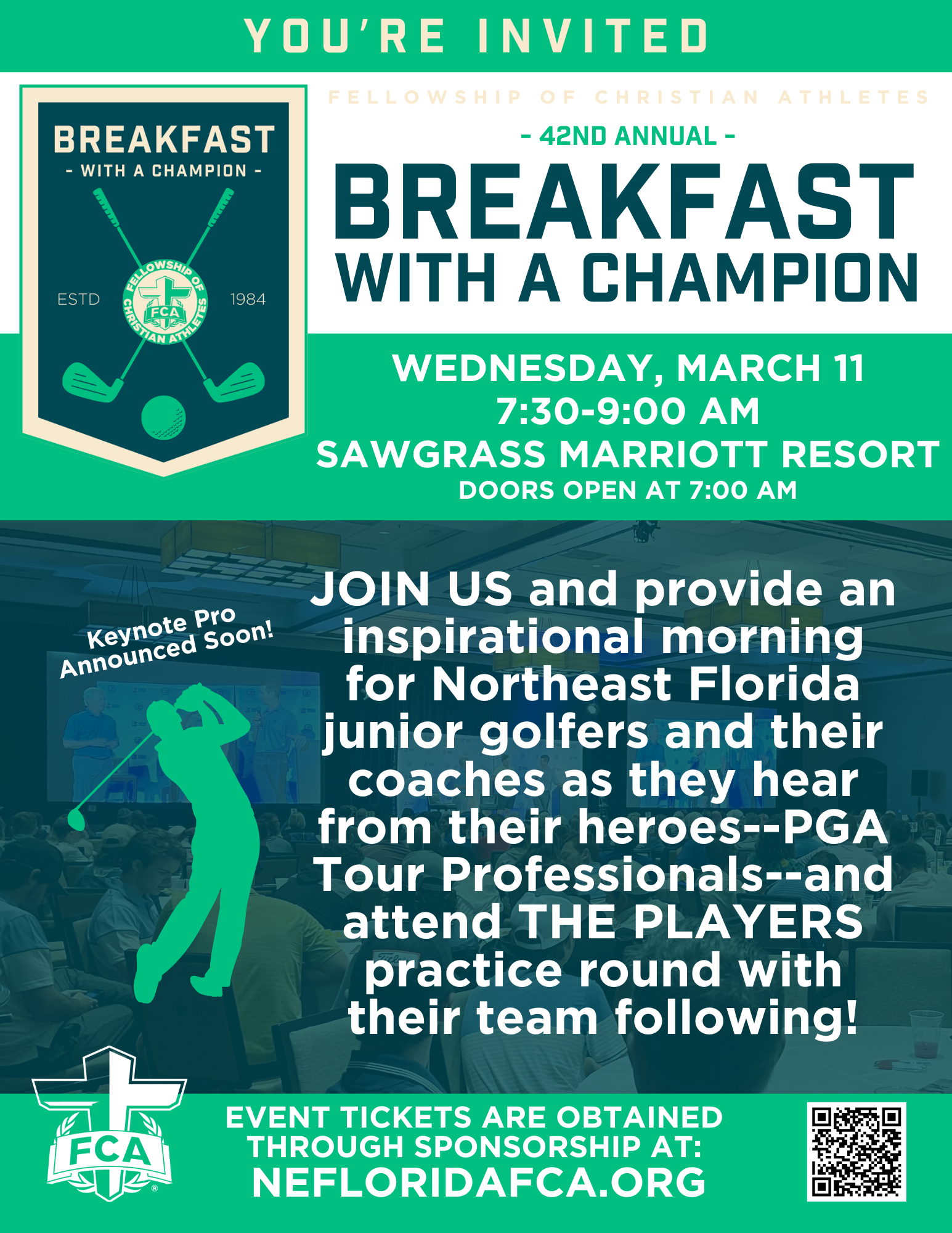 SPONSORS are needed so that 500+ NE Florida First Tee, middle school, high school, college golfers and coaches can attend this exciting and inspiring event free of charge. There are a variety of sponsorship options--starting at $400 that include: